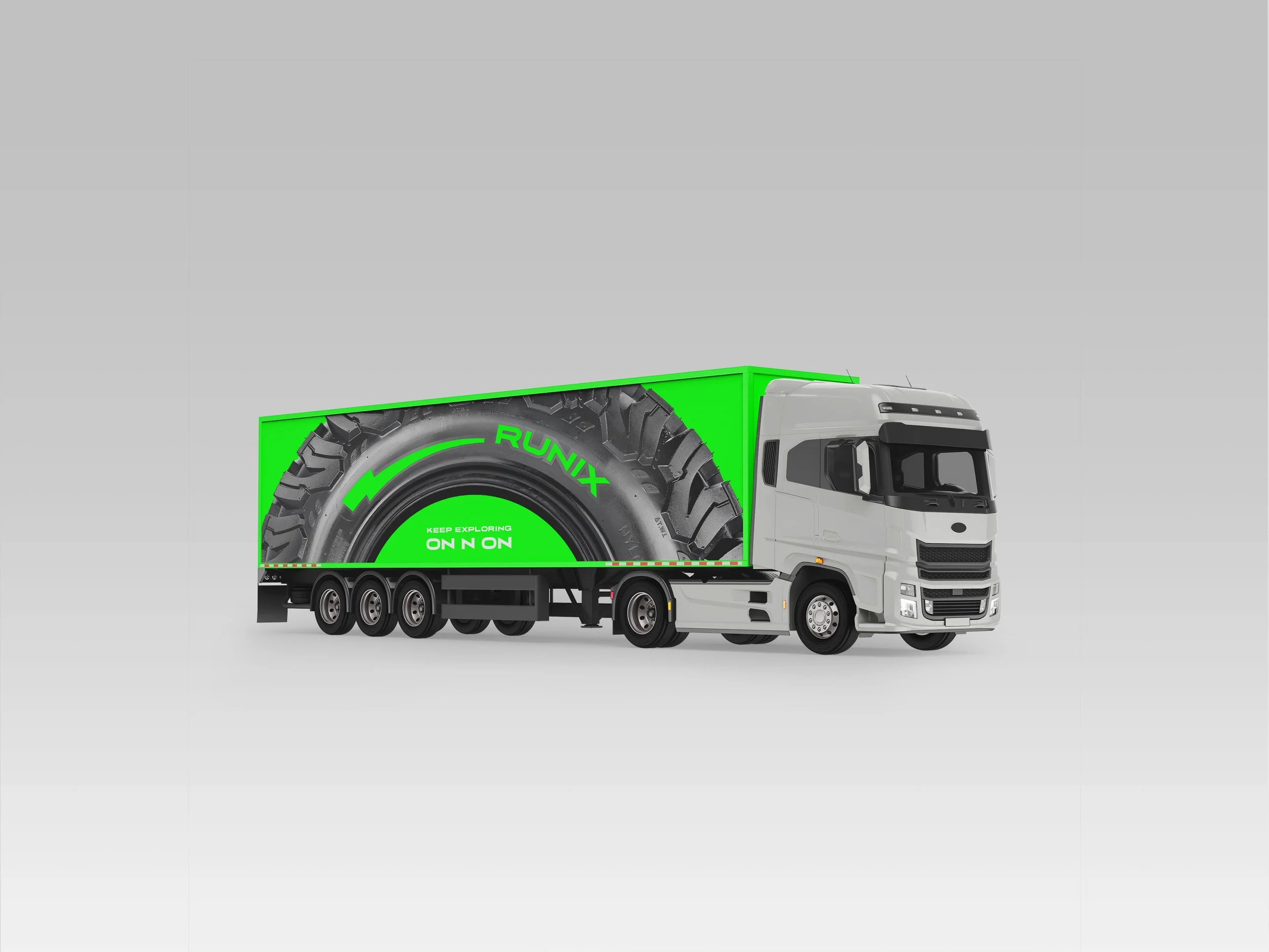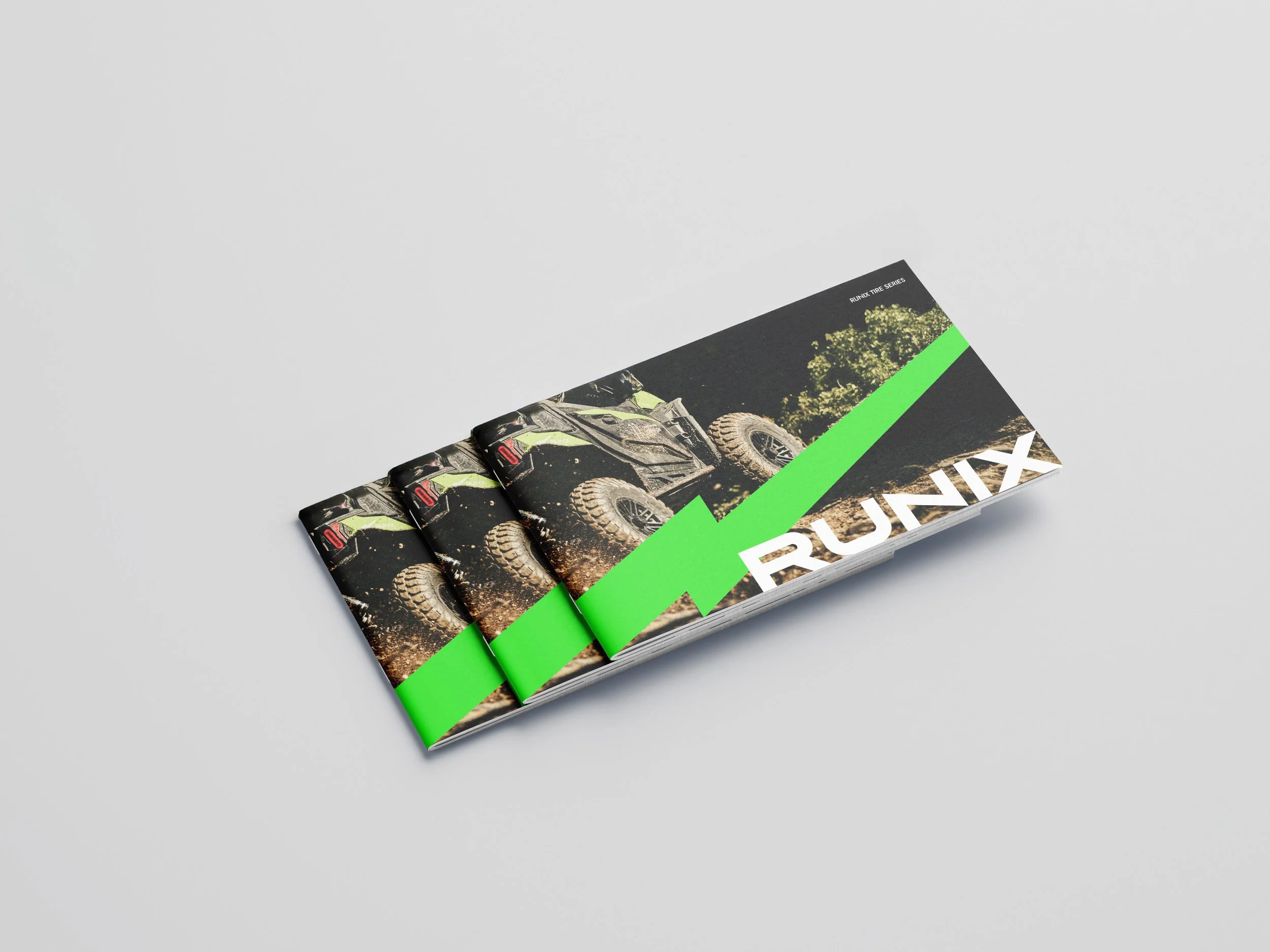 The custom typeface designed for RUNIX embodies the brand’s energetic and dynamic spirit. With a sharp and powerful structure, it conveys speed, strength, and forward momentum. This typeface is not only applied to the brand logo, but also extended across slogan visuals, tire model names, and product specifications, ensuring a consistent and cohesive visual identity at every brand touchpoint.
