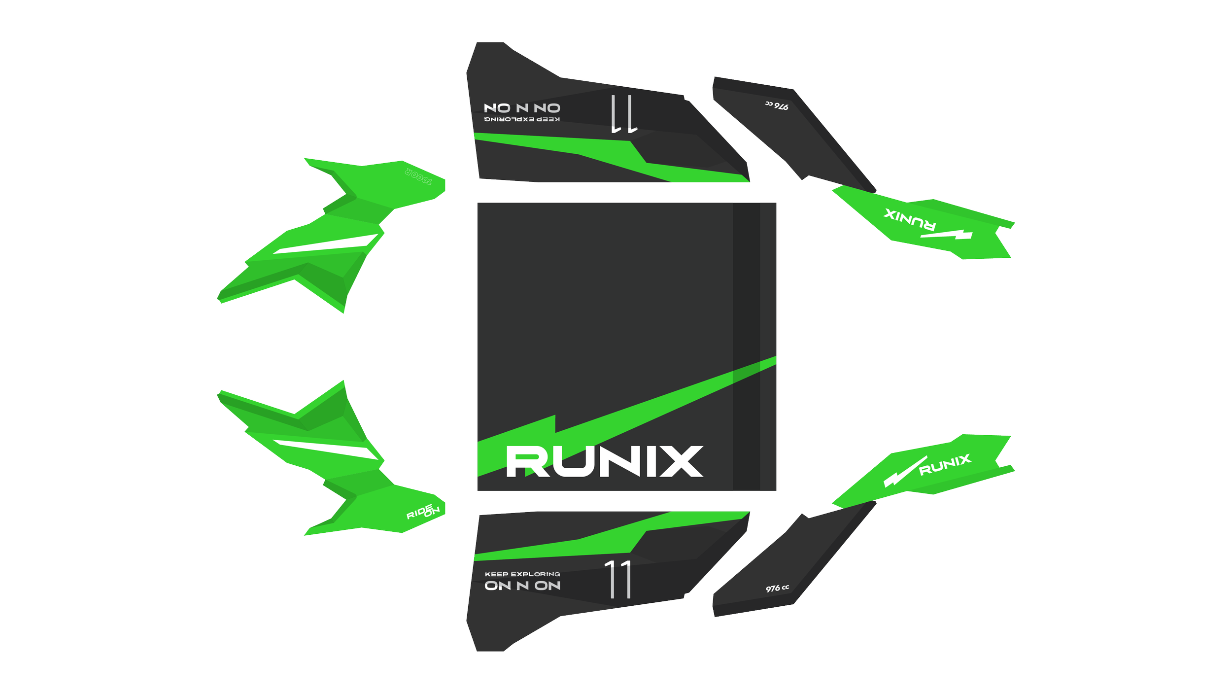 We created a dedicated concept vehicle for RUNIX to serve as the centerpiece for product performance demonstrations and promotional films. More than just a display unit, this ATV is a physical embodiment of the RUNIX spirit. The body design incorporates dynamic geometric elements derived from the brand identity, using sharp lines and speed-driven compositions to fully extend the core visual language. It reflects RUNIX’s energy, boldness, and adventurous character. In high-speed and extreme environments, the vehicle becomes the ultimate ambassador of both performance and attitude - symbolizing RUNIX’s relentless drive to push forward, ON N ON.