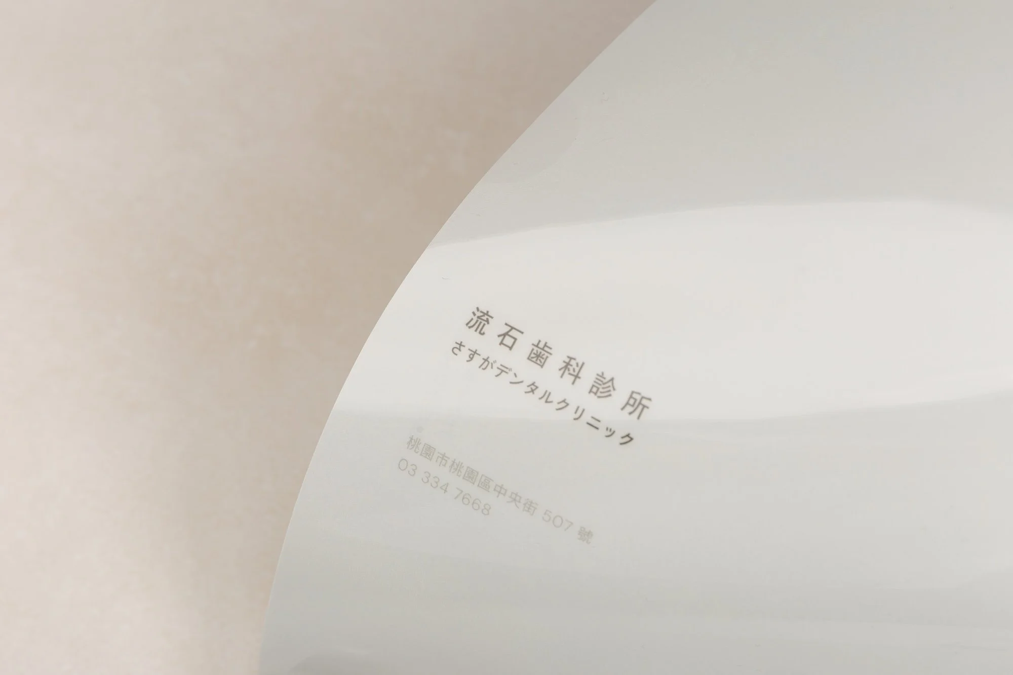 In its design expression, the brand adopts a natural and understated visual language — soft, misty tones combined with tactile paper textures and refined printing craftsmanship — to convey depth within simplicity. Every visual element, from the logo and typography to proportions and use of white space, reflects the clinic’s dedication to detail and its human-centered philosophy. The overall visual identity not only communicates medical professionalism but also embodies the doctor’s gentle yet resolute character. Through this honest and thoughtful design language, Sasuga Dental Clinic seeks to build enduring trust between doctor and patient, ensuring that with every visit, one truly feels — “as expected of Sasuga.”