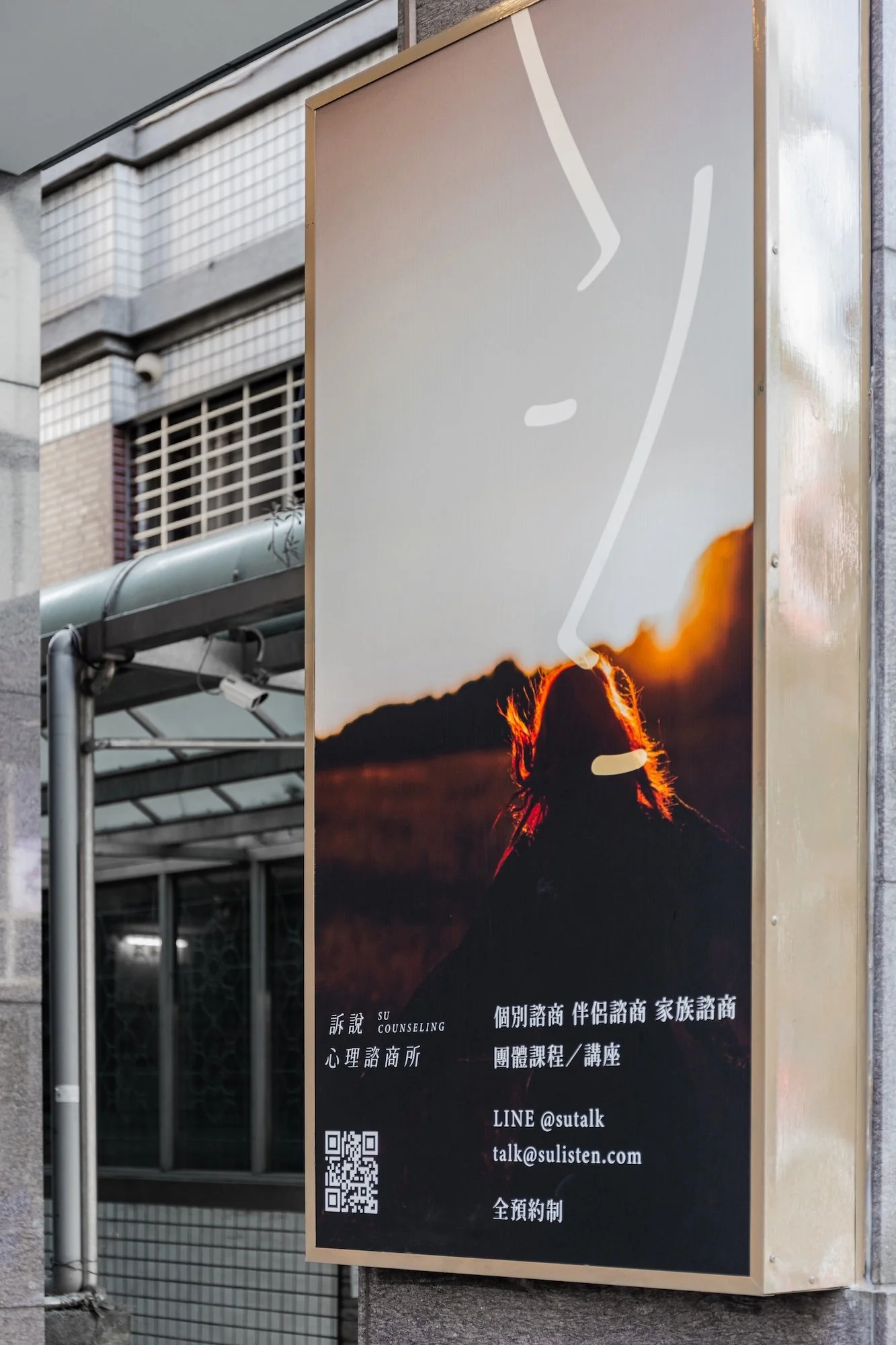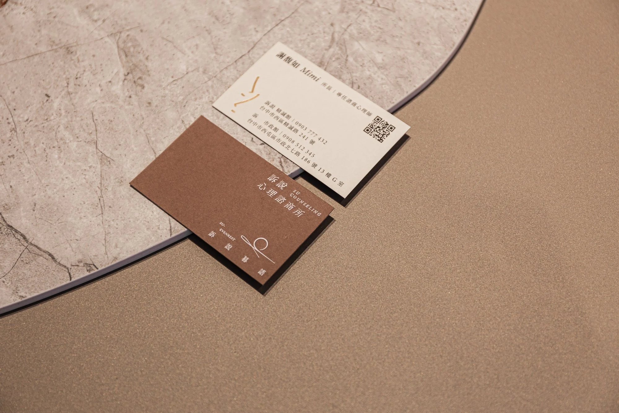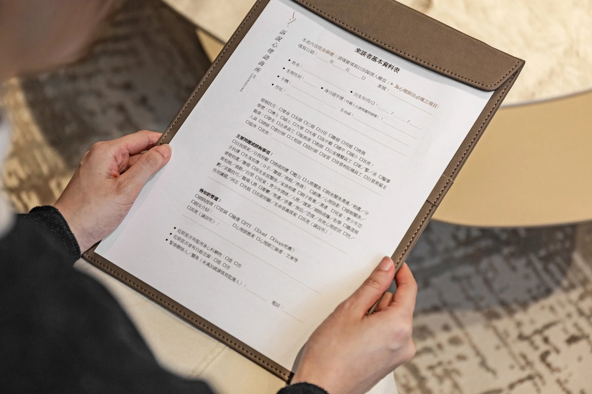 進入個別諮商室後,設計語彙轉向溫潤與柔軟,大面落地窗引入過濾後的柔和自然光,搭配圓弧曲線家具與大地色系織品,在中性的結構中注入包覆感,營造出安全且無壓的對話場域。